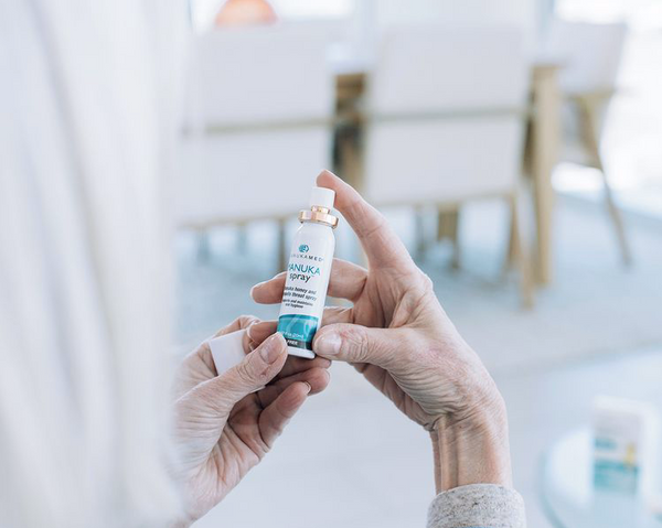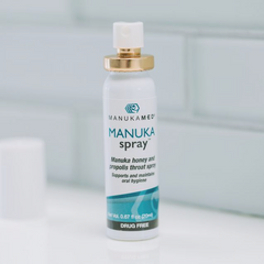 Manuka honey and propolis throat spray formulated to support and maintain oral hygiene*. Throat relief is just a spray away. MANUKA Throat Spray is a drug-free, natural product brought to you by ManukaMed.